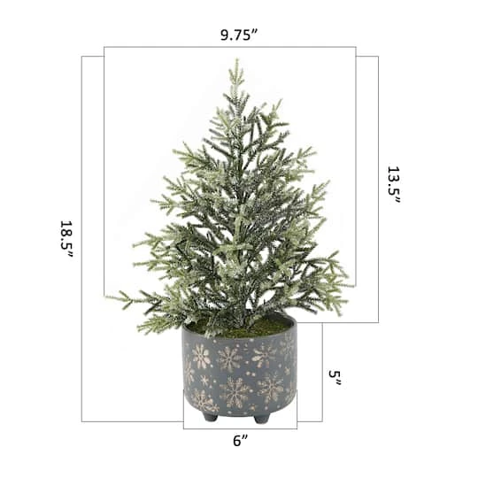 Experience the excitement of the Christmas holiday with this elegant 18.5″ Ceramic Footed Frosted Christmas Tree in Snowflakes placed on your mantel or side table.
