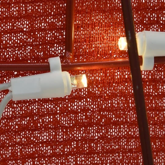 This decoration, featuring three individual letters spelling “JOY” with a red and white star mint candy as the “O”, is constructed of a lightly glittered fabric mesh wrapped around a sturdy wire frame. It is lit from inside with 80 total warm white LED lights that adds a pleasing glow. Each letter is attached to a sturdy metal stand and ground stakes are included for outdoor display. Letters can only be displayed one way as each is interconnected with electrical wire. For indoor or outdoor use.
