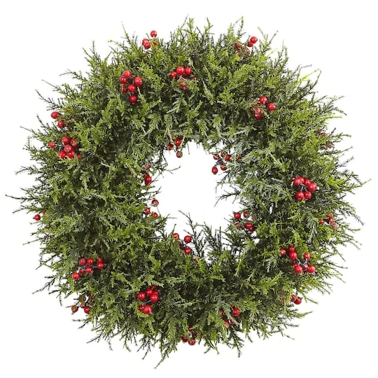The perfect look for the holidays whether it’s in your home or office, this lovely cedar berry wreath will be a favorite year after year. With soft green cedar pointing in every direction, accented by lush-looking berries, it’s the ideal size for almost any area. The best part is it’ll always look fresh, meaning it’ll be used year after year.