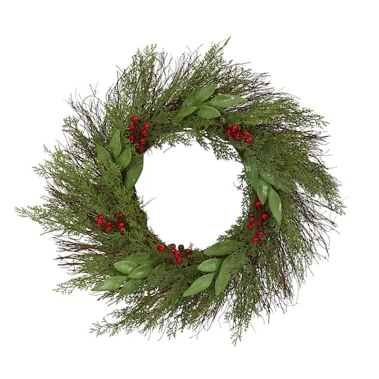 Spruce up the entrances to your home or office with this seasonal-inspired artificial wreath consisting of realistic-looking cedar and ruscus foliage.