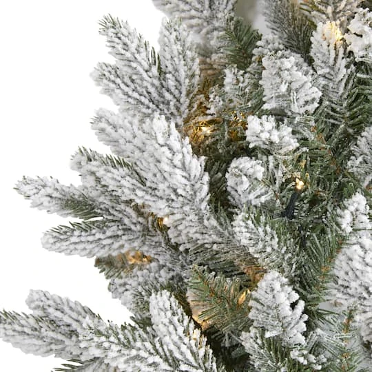 Showcase serious curbside appeal this holiday with this artificial Christmas wreath designed from seasonal evergreens and completely flocked with faux snow to evoke a winter setting. Pre-strung with lights to illuminate a wall or door, this decorative wreath makes for an inviting accent all throughout the season.