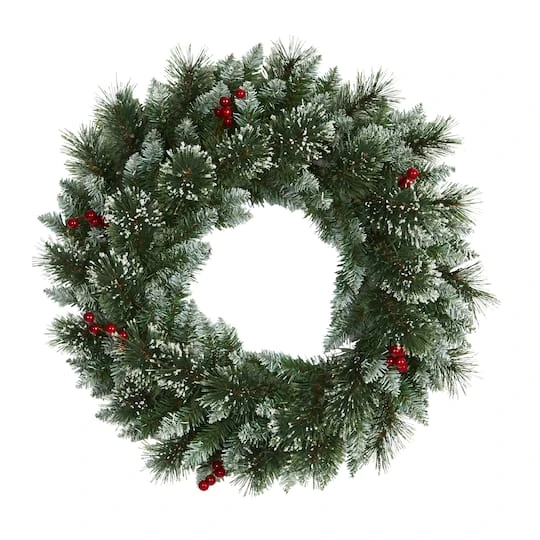 Light up seasonal accents with this artificial wreath designed from a collection of pine foliage, accented throughout with faux pinecones, all frosted with a hint of faux snow. Pre-strung with clear LED lights, this decorative wreath makes for an inviting accent all season long.