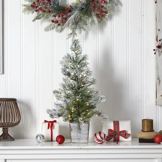 Create your own mini Christmas wonderland and rock around this Artificial Christmas Tree. Incredibly lifelike textured branches mimic real evergreens for a sturdy construction. This pre-lit artificial Christmas tree comes with lights and has upward-sloping branches — allowing you to decorate with mini-ornaments of your choice easily. Standing 2ft. from a decorative planter, this tree requires zero maintenance, just some fluffing, and shaping that’s easy with the bendable branches! Decorate as a trio with other trees or in your kids’ room, kitchen, apartment or other compact spaces.