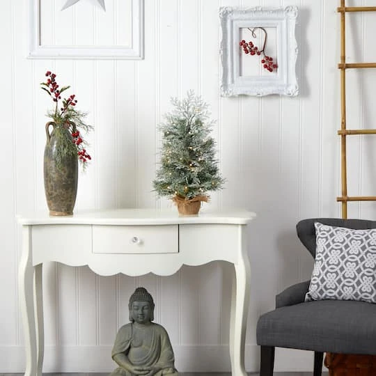 Spread Christmas cheer to compact spaces with this Artificial Christmas Tree. Inspired by nature and crafted from high-quality materials, this mini Christmas tree has lifelike bendable branches, allowing you to shape in your space, and add mini ornaments. To save you time and money, the faux tree comes with 35 LED lights for a cozy glow, allowing you to illuminate any space for years to come. Standing 2ft. from a burlap base (included in height) for a rustic touch, add to any desktop.
