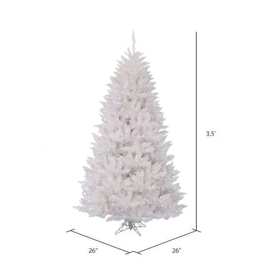 Introducing the Vickerman unlit sparkle white spruce artificial Christmas tree, a stunning addition to your holiday décor. Made by Vickerman, a trusted brand in the industry, this tree offers a wonderful alternative to the traditional green Christmas tree. With its sparkling white PVC tips and elegant design, this tree brings a touch of sophistication to any space. The 159 PVC tips are carefully crafted to mimic the look of real spruce branches, creating a lifelike appearance that will impress your guests. The pull-down branches make setup a breeze, allowing you to quickly and easily assemble the tree. This 3.5-foot tree is the perfect size for small spaces, apartments, or offices. Whether you’re looking to add some holiday cheer to your living room, bedroom, or entryway, this tree is sure to delight. Plus, it comes unlit, giving you the freedom to customize your tree with your favorite lights and ornaments. Included with the tree is a sturdy plastic tree stand, ensuring stability and support throughout the holiday season. The stand is easy to assemble and disassemble, making storage a breeze. Celebrate Christmas in style with this beautiful white artificial Christmas tree from Vickerman. Its compact size, stunning design, and high-quality construction make it a great choice for anyone looking to add a touch of elegance to their holiday décor.