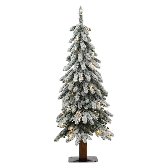 Create a snowy scene with the artificial Flocked Alpine Tree collection. The center poles are solid Paulownia wood, adding to the natural charm of the tree. Based on the Norway Spruce tree, its graceful down-swept silhouette has a light dusting of snow and room between branches for small ornaments if desired.
