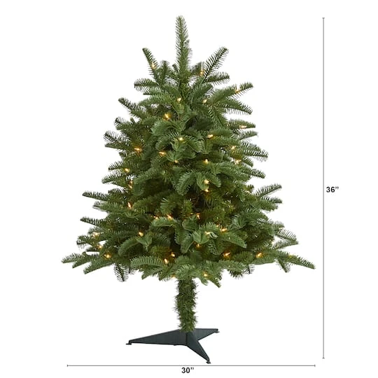 Create a traditional holiday scene in your home or office with the help of this artificial Christmas tree! Completely maintenance-free, this realistic looking fake Christmas tree boasts a tier-like silhouette of seasonal evergreens made up of bendable branch tips for decorating with your own personalized ornaments. Arriving pre-strung with warm white lights to eliminate tangles and carefully stabilized on a metal stand, this traditional 3ft. tall artificial Christmas tree will not only make decorating a breeze but ensure your home is always seasonally attired for years to come.