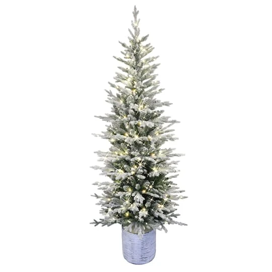 Deck the halls with the Puleo International 6 foot pre-lit potted flocked artic fir artificial Christmas tree, inspired by lush wintery forests. The incorporated lights means no more climbing ladders to string lights, saving decorating time. When a single bulb burns out, the other lights on the strand will stay lit for your convenience. With easy to assemble pieces and an included base, your house will be ready for the holidays faster than you can say “Rockin’ Around the Christmas Tree”.