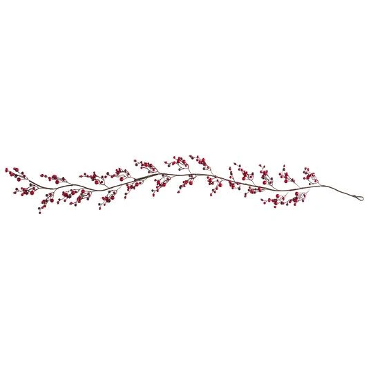 Incorporate holiday accenting with this artificial garland showcasing realistic looking holly berries in bright, red hues. A rustic addition to home décor, this silk garland reaches 6’ long. Easily bendable for styling purposes. Great for doorways and windows, this wreath evokes seasonal cheer wherever you put it. Silk plants are manufactured using synthetic materials and are well designed and constructed to be life-like in appearance.
