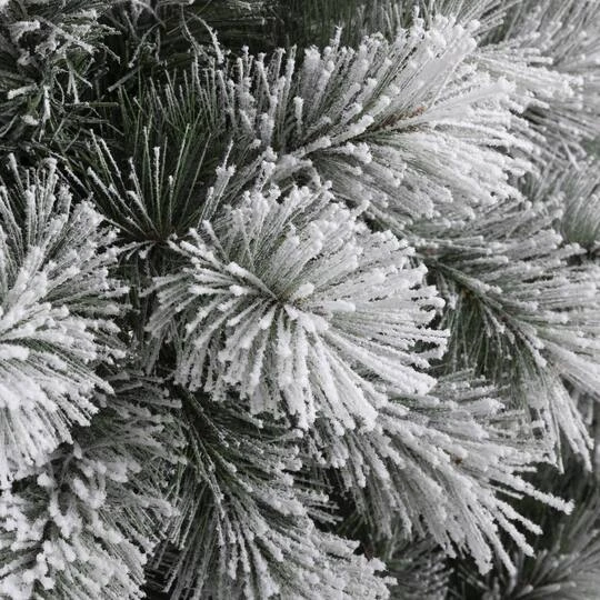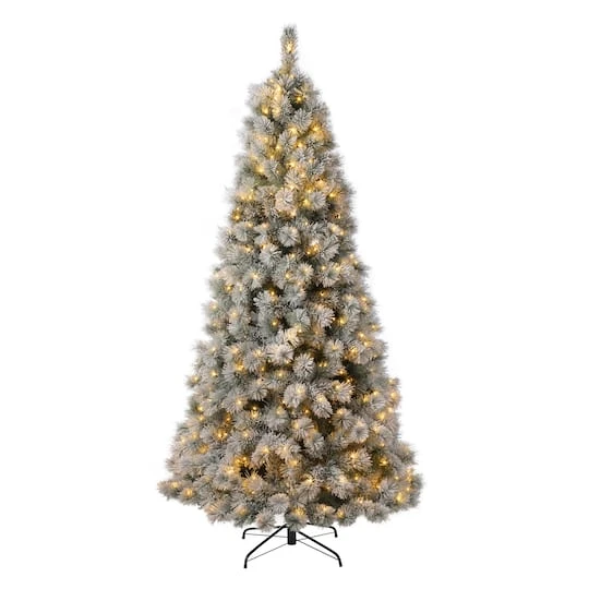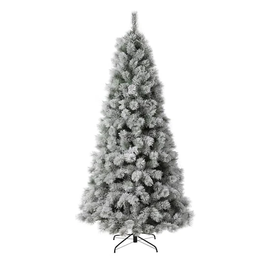 This 7.5ft. pre-lit snow flocked Christmas tree creates a unique wintery feel. It will be an eye-catching addition to any room during the Christmas holidays.