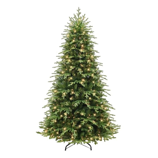 Embrace the joy of the holiday season in your home with this pre-lit green Galveston fir Christmas tree from Puleo International. This artificial holiday tree with verdant green needles and an elegant conical shape perfectly captures the ambiance of wintry forests in your home. Decorated with 800 clear incandescent lights, this tree illuminates your home with a warm festive glow. Assembly is simple and quick with easy to hinge branches, and a metal stand is included for convenient placement anywhere in your home. The flame-retardant, hypoallergenic, and needle-shed resistant tree offers a safer alternative to fresh-cut Christmas trees, so you can welcome in friends and family for holiday celebrations without worry.