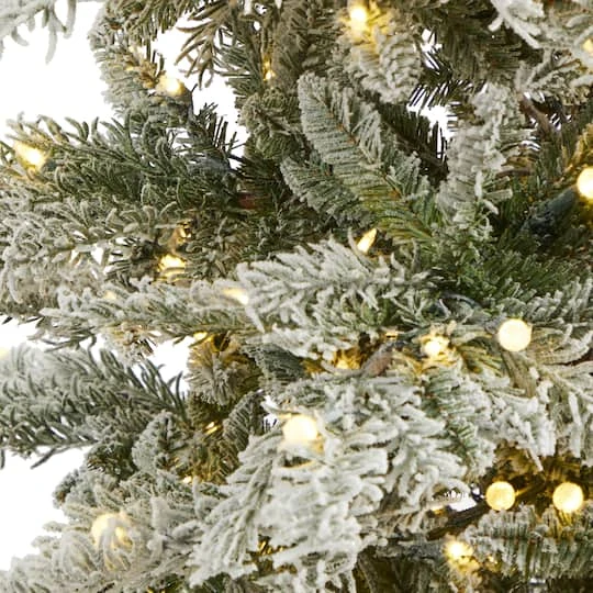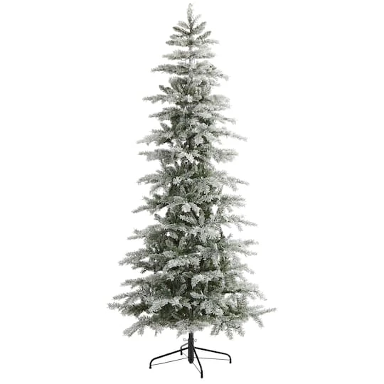 Create your own White Christmas this holiday season with the help of this flocked artificial Christmas tree! Completely maintenance-free, this winter-inspired fake Christmas tree boasts various tiers of soft looking foliage made up of easy-to-bend branch tips for accenting with your own personalized ornaments and holiday accents and finished with a light dusting of faux snow to evoke a winter setting. Arriving pre-strung with LED lights to eliminate tangles and carefully stabilized on a metal stand, this enchanting 7.5 foot tall frosted artificial Christmas tree will not only make holiday decorating a breeze but ensure your home is always holiday-dressed for years to come.