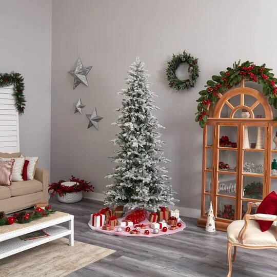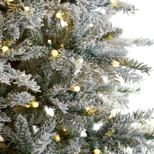 Create your own White Christmas this holiday season with the help of this flocked artificial Christmas tree! Completely maintenance-free, this winter-inspired fake Christmas tree boasts various tiers of soft looking foliage made up of 1061 easy-to-bend branch tips for accenting with your own personalized ornaments and holiday accents and finished with a light dusting of faux snow to evoke a winter setting. Arriving pre-strung with 500 LED lights to eliminate tangles and carefully stabilized on a metal stand, this enchanting 8.5 feet tall frosted artificial Christmas tree will not only make holiday decorating a breeze but ensure your home is always holiday-dressed for years to come.