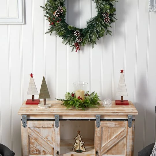 Create a cozy wonderland during the holidays with this Christmas candelabrum. Decorative yet, festive, soft-textured evergreens in different shades are accented by berries, inspired by nature and made from high-quality materials. Set the scene and add your favorite candle. With a height of 8″, add a seasonal touch wherever displayed. Your arrangement will look beautiful for years to come; simply wipe clean with a soft dry cloth when needed.