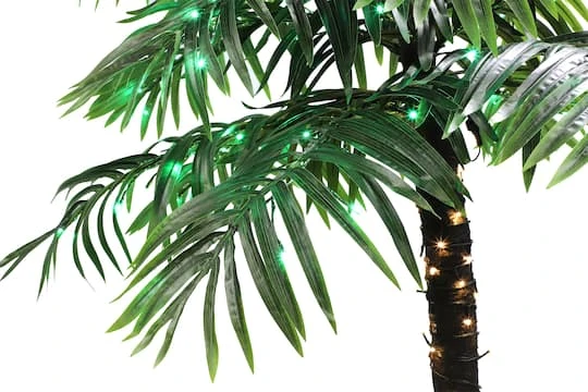You’ll want to grab your hammock for an afternoon nap when you spy this flourishing 8ft. Palm Tree. With lush palms, this tree looks ready to sway in the gentle breeze as the waves of the ocean roll in the background. The natural looking trunk and decorative base just add to the tropic feel, making this an all-time favorite.