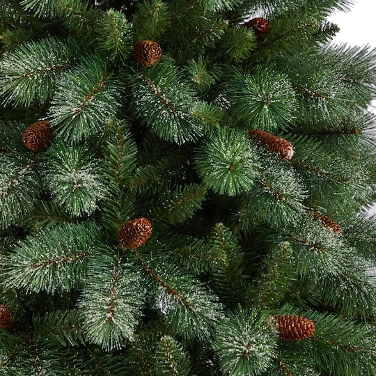 Evoke hints of a winter wonderland this holiday season with the help of this snowy artificial Christmas tree! Completely maintenance-free, this winter-inspired fake Christmas tree boasts a robust silhouette of snow-dusted foliage made up of 1,159 easy-to-bend branch tips that can showcase your holiday ornaments and accented throughout with faux pinecones that look incredibly lifelike. This 8 ft. tall snowy artificial Christmas tree will ensure your home is holiday-dressed for years to come. Your artificial Christmas Tree will look beautiful for years to come; simply wipe clean with a soft dry cloth when needed.
