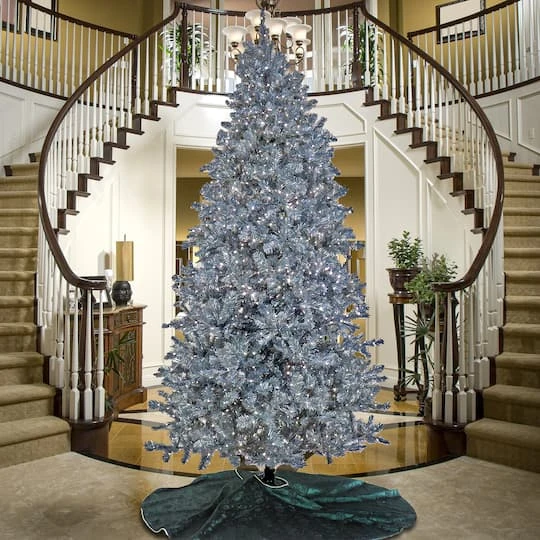 Bring a whole new dimension to your holiday decorating with this evergreen tree featuring sparkling metallic branch tips. This thick, full-bodied tree is strung with 2,000 cool white LED Infinity Lights®, which are micro-LED bulbs built right into the light strings. This design allows for an increased volume of lights and cleaner overall look that provides a distinctly elegant result. Four-section, hinged branch construction makes assembly quick and easy. Sturdy folding metal tree stand is and lights ON/OFF footswitch included.