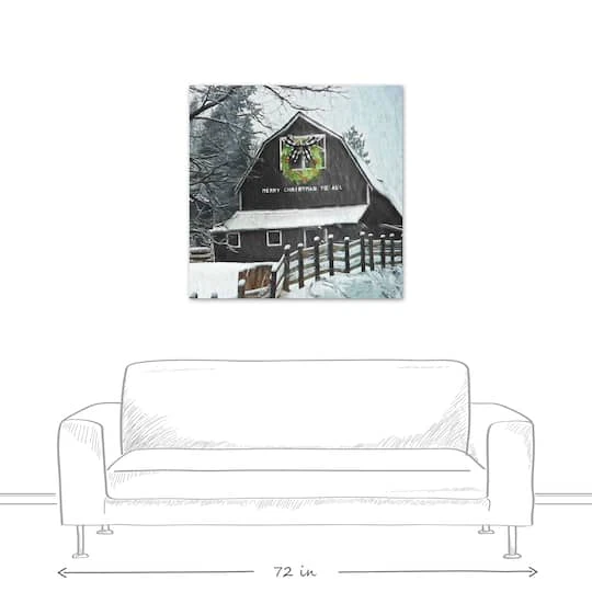 Black Barn With Wreath 36×36 Canvas Wall Art
