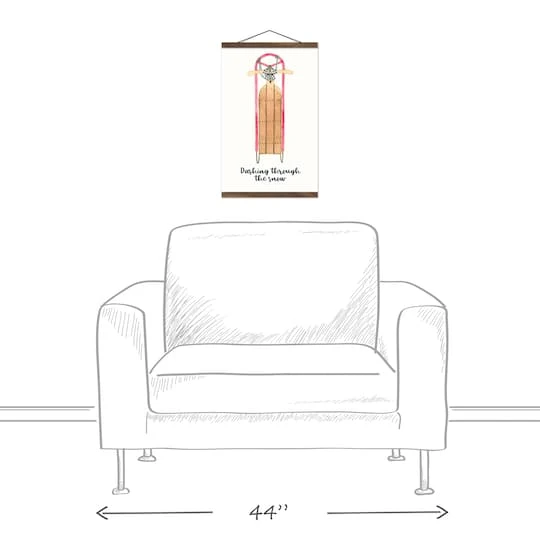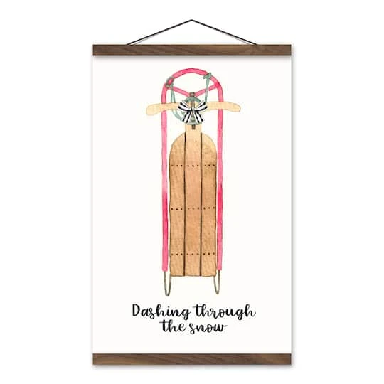Dashing Snow Sled 12×18 Teak Hanging Canvas