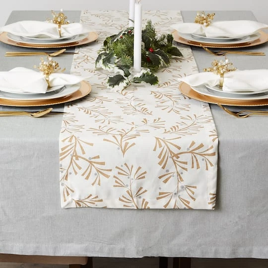 Runners provide a great place to set down platters to prevent spills and scratches on your tabletop while adding style and flair. This holly leaves runner is appropriate for a table that can seat 8-10 people. Place lengthwise on console tables, dining tables, coffee tables or entryway tables to instantly update up any room.
