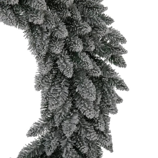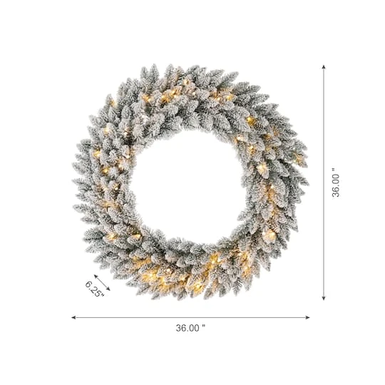 The snow flocked 36″ Christmas Wreath crafted with pine needle tips will add a touch of charming light and cheer to your front door or window during the holiday season.