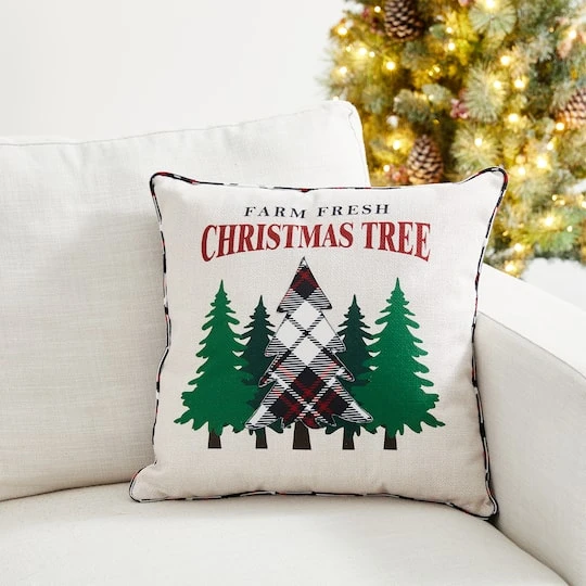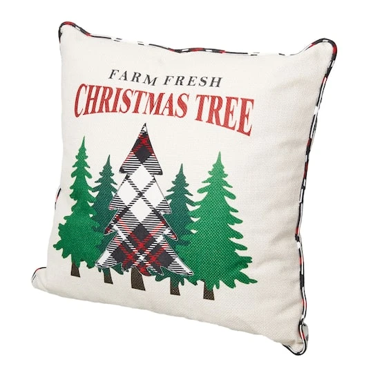 This beautiful heavy cotton Christmas pillow is adorned with trees and Christmas sentiments in front and has plaid fabric on the back. Surely a perfect choice for home decoration and centerpiece in your living room.