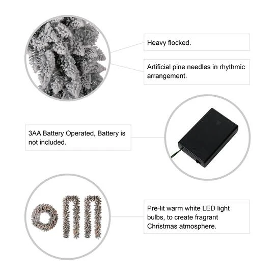 Create the perfect holiday touch for your home with this garland and wreath set from Glitzhome. The snow flocked Christmas wreath is crafted with pine needle tips and adds a touch of charming light and cheer to your front door or window during your holiday season. The 9-foot snow flocked garland provides ample length to easily adorn doors, mantles or banisters, making this versatile decoration ideal for any situation. Each of the 220 tips is modeled to a pine tree branch while the snow flocked design creates a winter wonderland around your home. Several large pinecones decorations among the needles add an extra holiday touch to this garland. It creating the perfect holiday touch for your home.