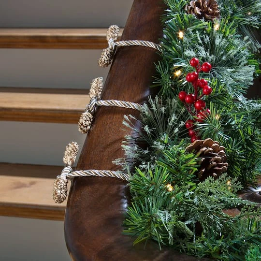 These decorative twist ties secure garland, lights, wreaths, stockings and other decorations with ease, without interrupting your Christmas décor. These decorative rope garland ties act as a twist tie, as there’s a hidden wire inside. Simply wrap around your garland and twist it to secure!
