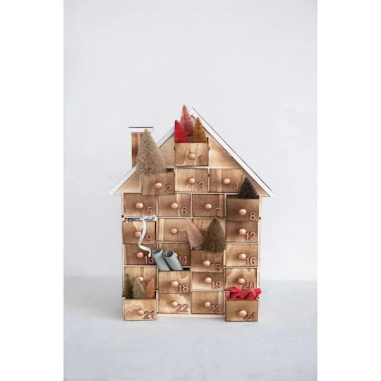 This advent calendar is a fun way to anticipate Christmas. Made out of wood, this advent calendar is set in a cute home.