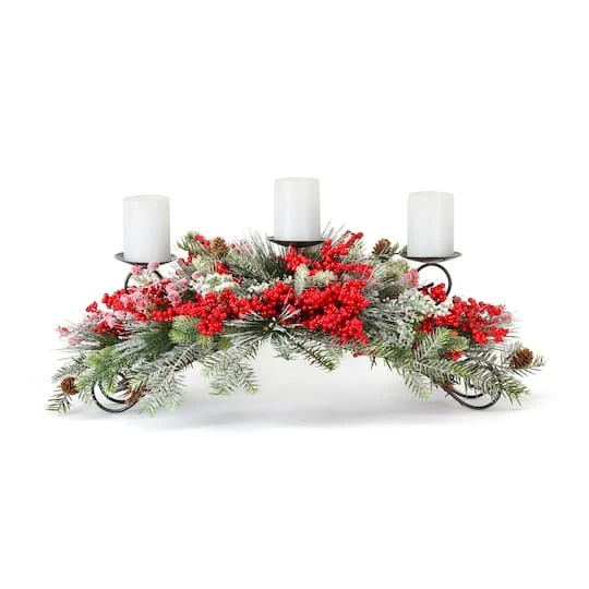 This pine and berry centerpiece is perfect for your home this holiday season. Set it on your table for your Christmas dinner with matching placemats and table runner for a complete look.