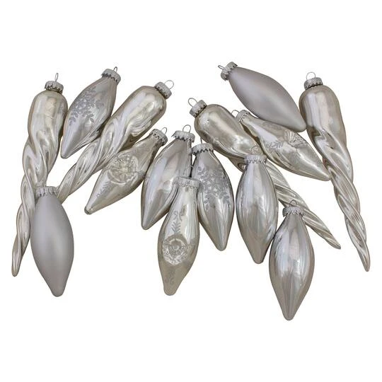 These collection of silver glass ornaments is great way to add to your Christmas collection – or start one from scratch! These ornaments come in an assortment of patterns, textures and shapes sure to make your tree sparkle and shine.