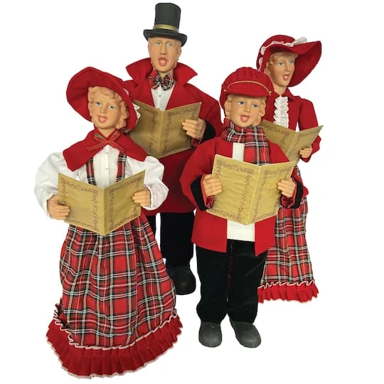 The clear and joyous singing of Christmas carolers is a pleasure to both young and old, and these exquisitely handcrafted carolers are a beautiful representation of this Christmas magic. You can almost hear the hearty baritone of the father balancing out the higher notes of the children, while the mother steadies the performance with her rich and measured alto. Dressed in Victorian fashion, the men wear high collared red coats and plaid accessories while the ladies are dressed in red plaid dresses and red hats. Make your holidays fun and festive with this delightful family of carolers.